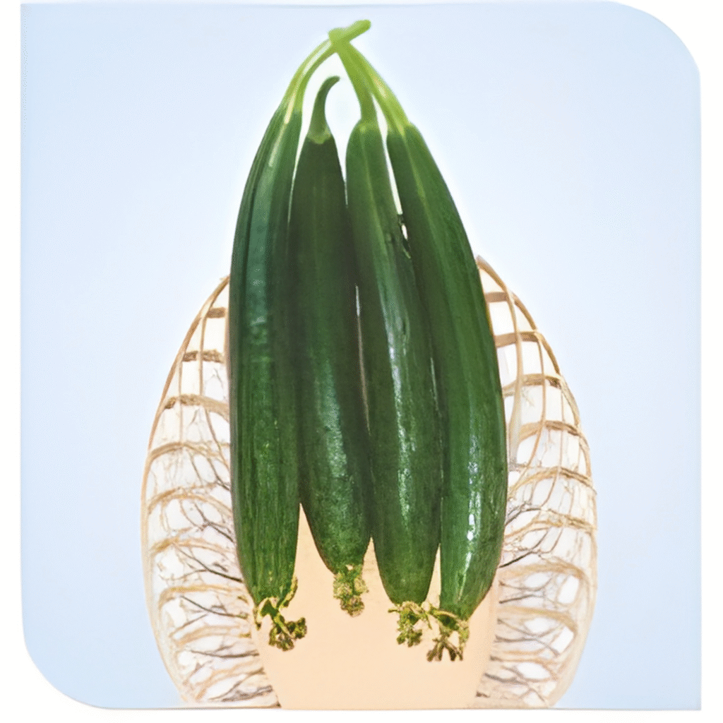 First Harvest ~ 45 - 50 days after sowing Fruit Shape ~ Slender Fruit Colour ~ Shiny dark green Fruit length~ 22 - 25 cm. Fruit weight ~ 120 – 140 gm. |